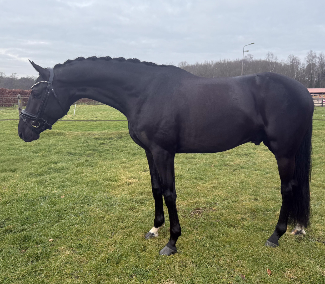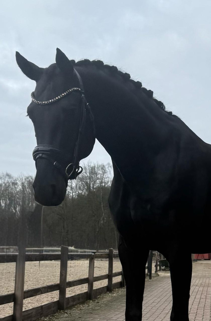Jeugdige zwarte hengst die met veel lossigheid beweegt en rondom goed is op de X-rays incl. rug en hals.